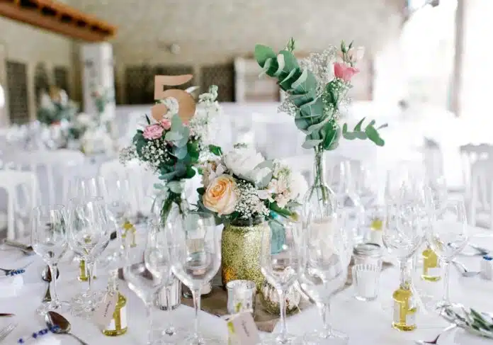 Quand l’inventivité rejoint le bon sens, on redécouvre le potentiel de l’existant. Fouiller dans les réserves familiales, demander autour de soi, emprunter à des amis : voilà qui permet d’alléger la note tout en racontant une histoire. Les chaises au charme suranné, la vaisselle chinée ou les nappes d’antan transforment une salle banale en un espace chargé d’âme. Réutiliser, recycler, détourner, c’est aussi faire un geste pour la planète tout en respectant son budget.